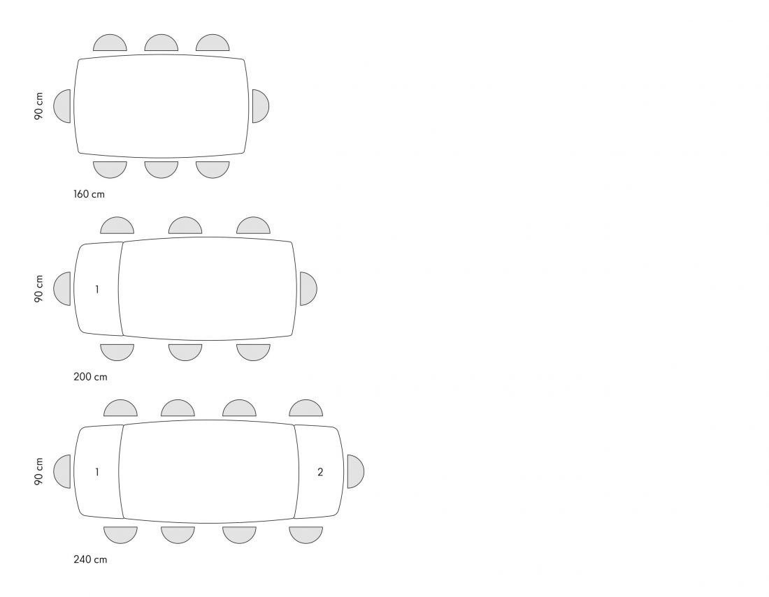 Misure aperto: 240 x 90 x h76 cm (con due allunghe);