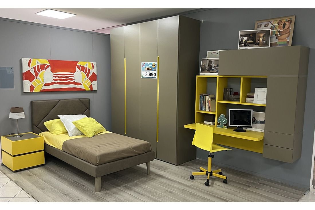 Cameretta moderna quarzo e senape completa - OFFERTA Moretti Compact