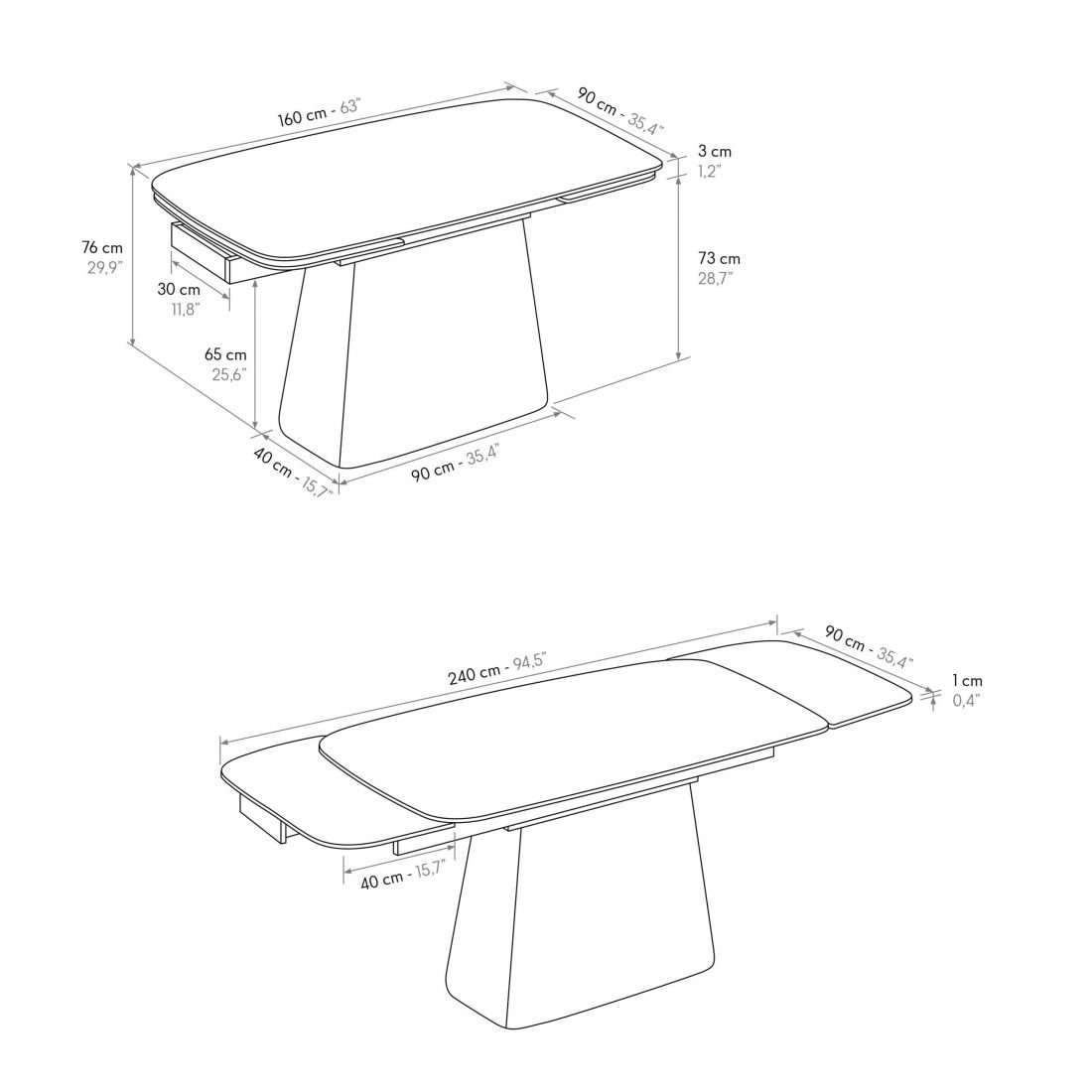 *Non c’è perfetta continuità delle venature tra il piano del tavolo e le allunghe.